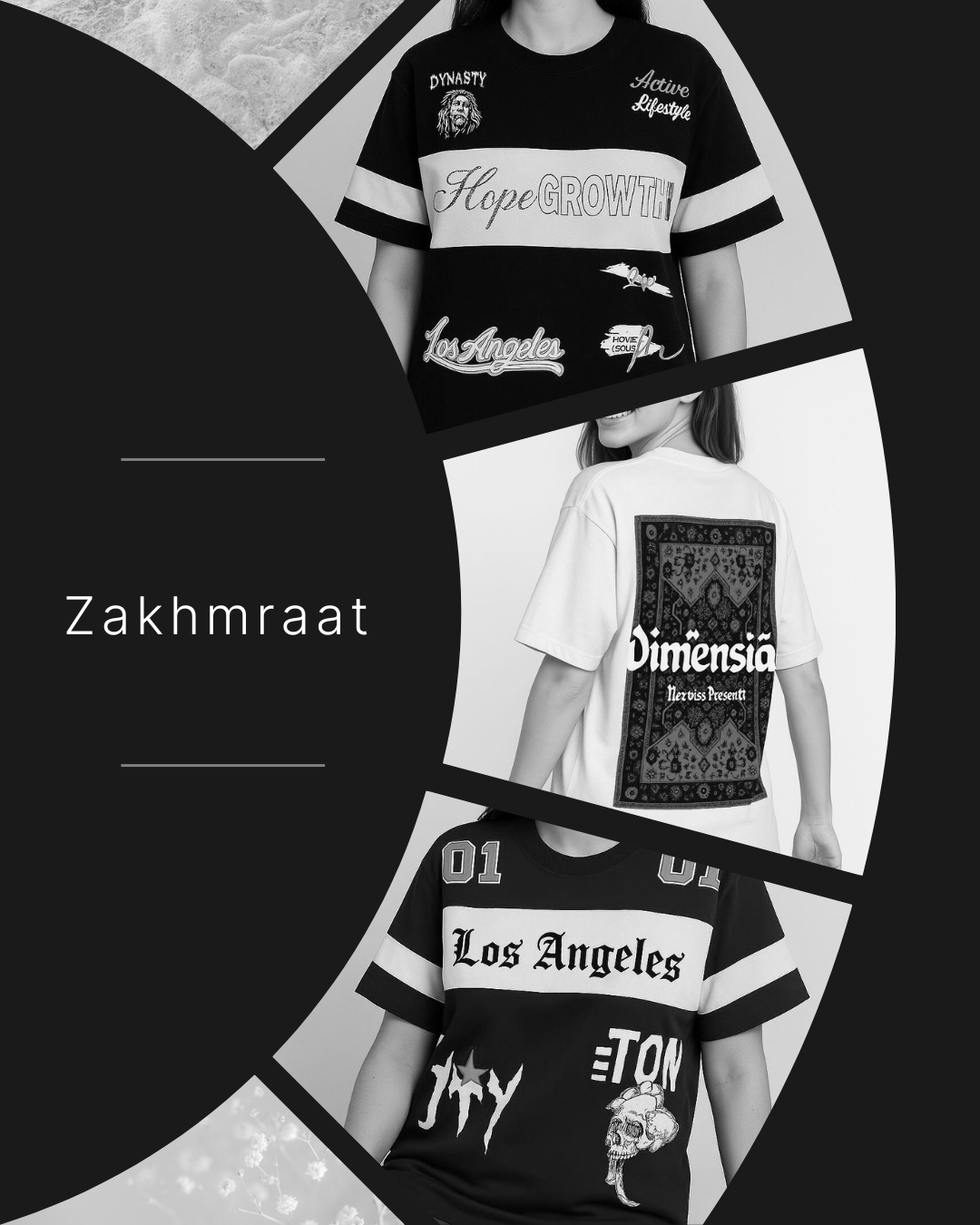 ZAKHMRAAT is more than just a streetwear label — it’s a voice for a generation that embraces its scars, roots, and raw emotions with pride. Our name, a fusion of Zakhm (wound) and Raat (night), speaks to the silent strength of those who wear their pain like art.